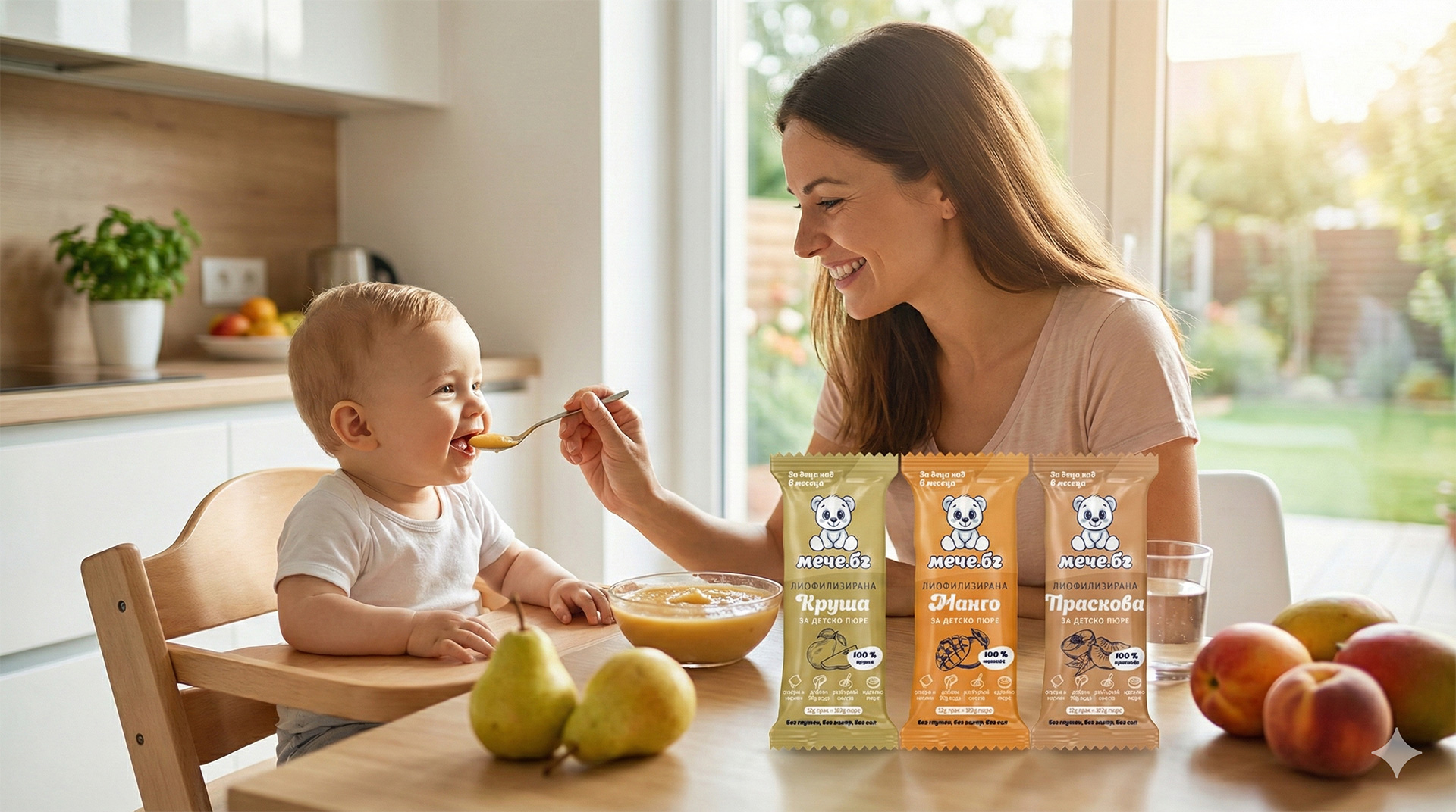 Да, те предлагат разнообразни вкусове (като манго, кайсия, праскова, ябълка и круша) целогодишно, без сезонни ограничения. Това улеснява въвеждането на нови вкусове от 6-месечна възраст и прави храненето забавно и полезно.