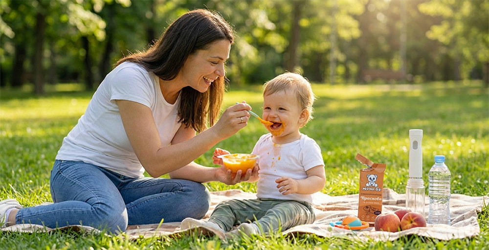 Да, те предлагат разнообразни вкусове (като манго, кайсия, праскова, ябълка и круша) целогодишно, без сезонни ограничения. Това улеснява въвеждането на нови вкусове от 6-месечна възраст и прави храненето забавно и полезно.